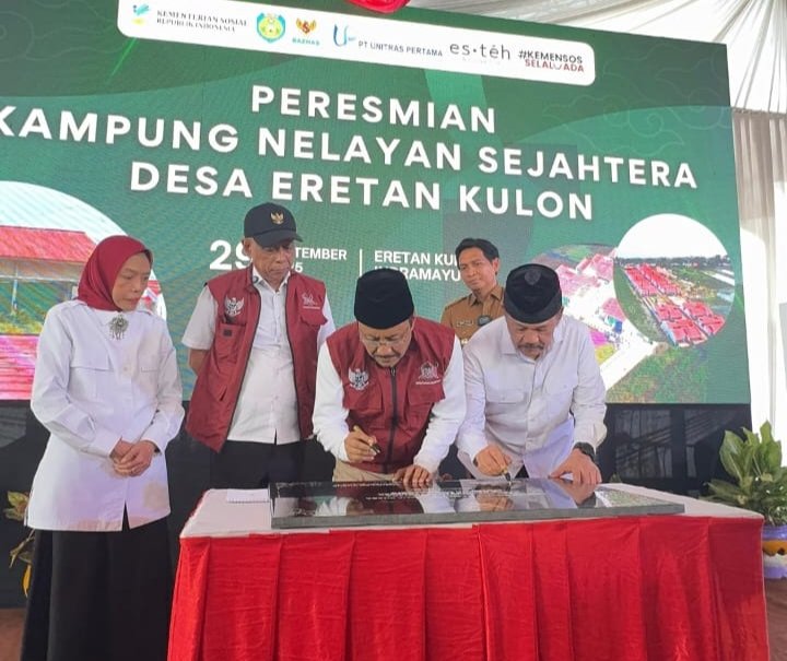 Peresmian ditandai dengan penandatanganan prasasti Peluncuran Kampung Nelayan Sejahtera oleh Menteri Sosial Saifullah Yusuf dan Ketua Baznas RI Noor Achmad, didampingi Wakil Menteri Sosial Agus Jabo Priyono dan Bupati Indramayu Lucky Hakim.