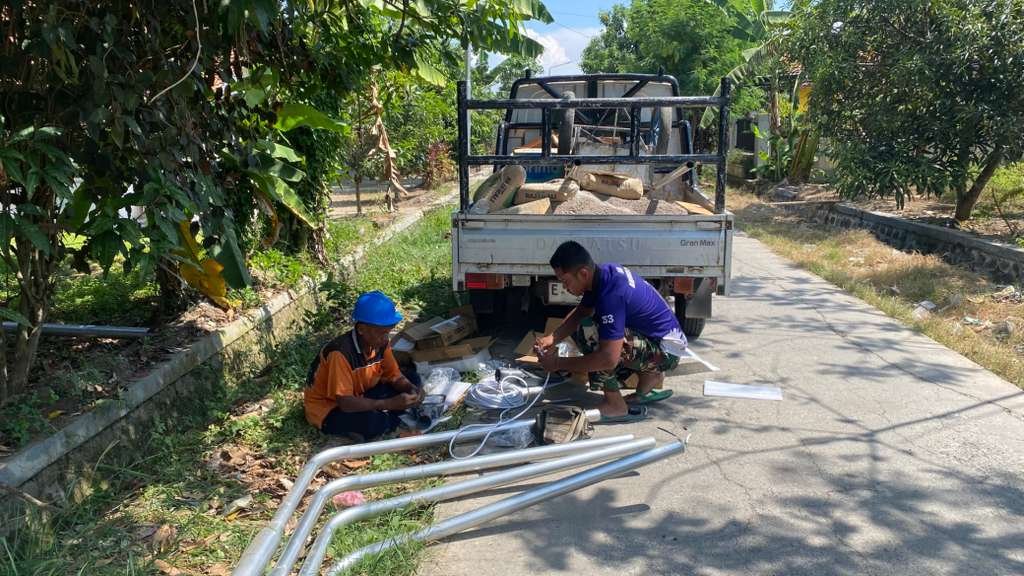Kerikil.id, Indramayu – Anggota Satgas TMMD ke-126 Kodim 0616/Indramayu bersama masyarakat setempat melaksanakan kegiatan perakitan tiang dan lampu penerangan jalan umum (PJU) sebanyak 10 titik yang berlokasi di Blok Sigedang, Desa Longok, Kecamatan Sliyeg, Kabupaten Indramayu, Minggu (19/10/2025).