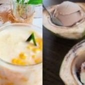 Es krim khas Pontianak ini disajikan unik menggunakan batok kelapa muda sebagai mangkuk. Tiga scoop es krim homemade dengan rasa berbeda dipadukan dengan jelly panjang dan kacang merah. Perpaduan manis, gurih, dan segar menjadikannya favorit pelepas dahaga.